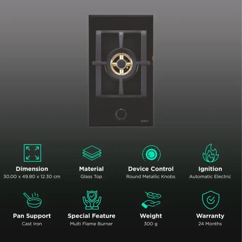 Perfect for modern modular kitchens, its ergonomic knobs and cast iron pan supports offer effortless cooking control. Experience the blend of Italian design and advanced functionality — ideal for compact kitchens and single-burner setups.