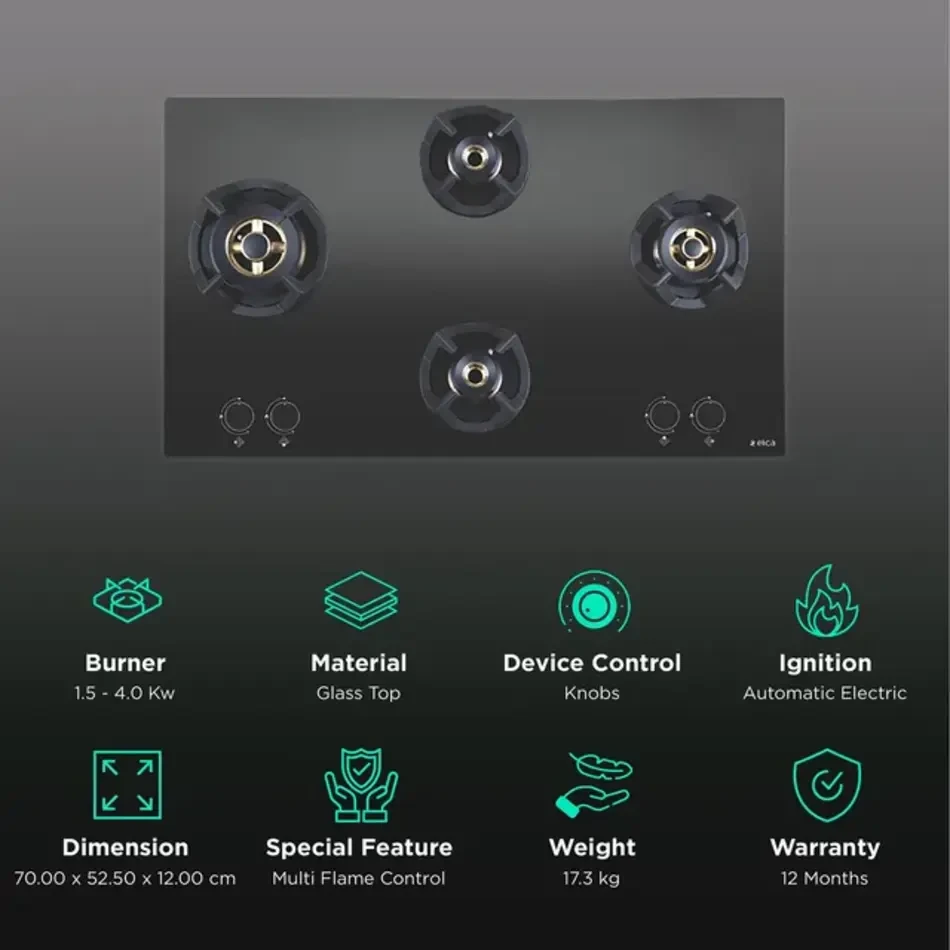 The toughened glass top offers durability and a sleek finish, while auto electric ignition and metal knobs add convenience and precision. Whether you’re simmering, sautéing, or deep-frying, this hob ensures effortless control and consistent performance.