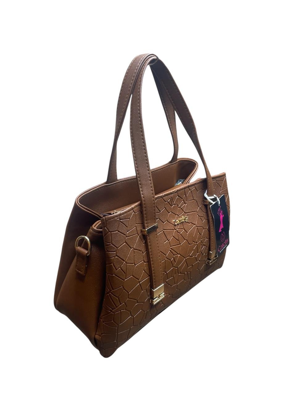 Elevate your everyday style with this luxury textured brown handbag from Cayler. Crafted with premium faux leather featuring a unique geometric embossed pattern, this handbag is designed for both elegance and durability. The dual-handle design makes it comfortable to carry, while the spacious interior provides ample room for essentials like wallet, phone, makeup, and more. Perfect for office, shopping, or casual outings, this bag combines functionality with chic fashion.
