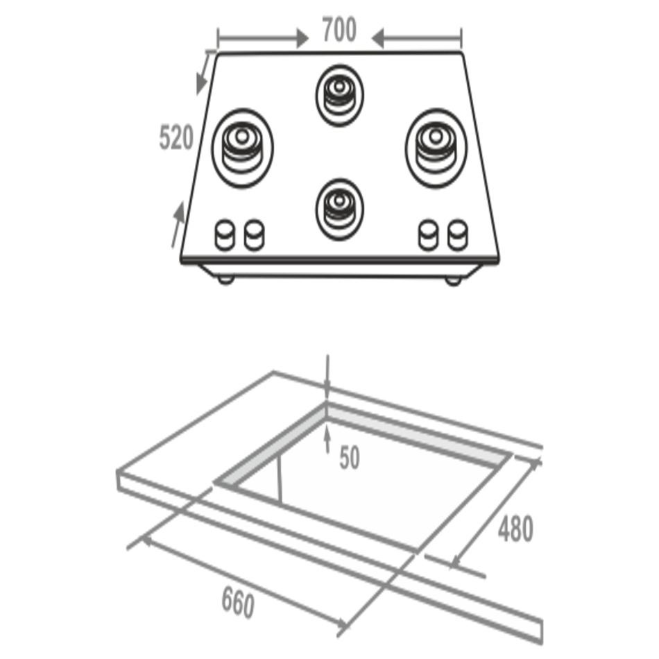 70 cm Built-in Glass Hob