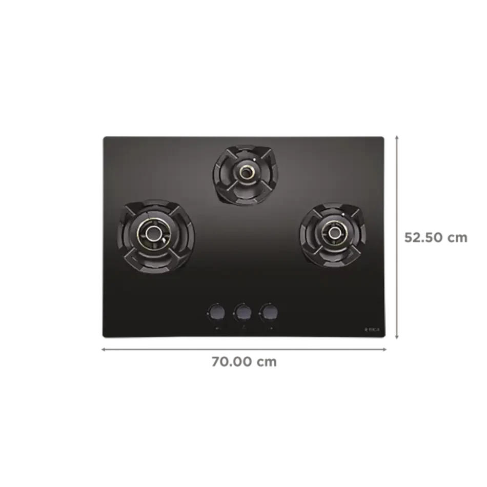 The Elica CLASSIC FLEXI AB MFC 3B 70 MT is a sophisticated 3-burner built-in hob engineered for performance and elegance. Its 70 cm width makes it ideal for mid-to-large kitchens, while the black tempered glass top and cast iron pan supports exude a premium style.
