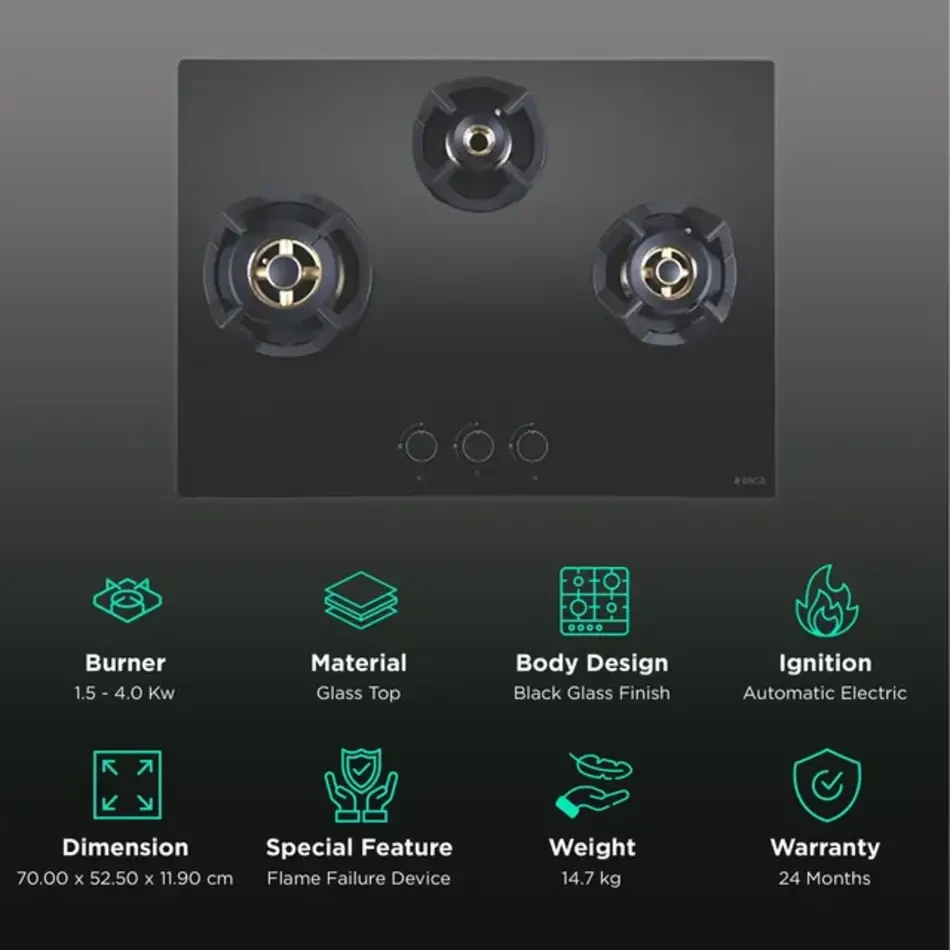 Compact yet spacious 3-burner layout – ideal for small to medium kitchens