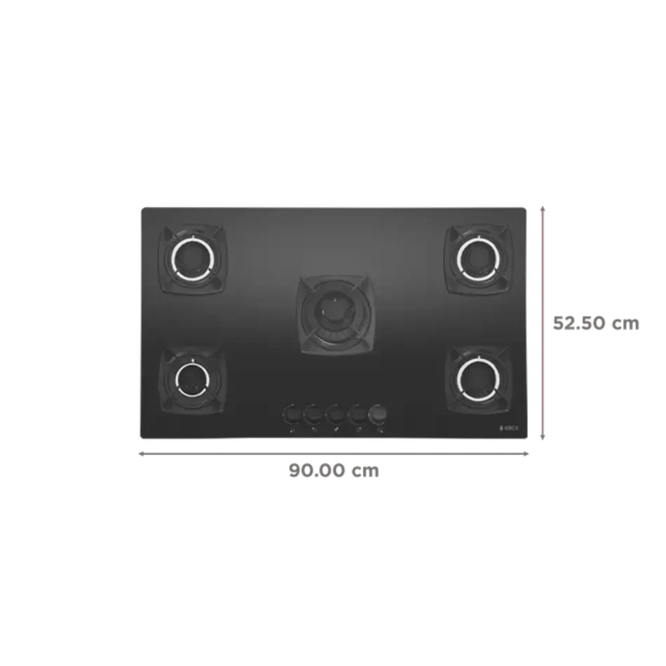 The Elica DT FLEXI MFC 5B 90 Swirl is a premium 5-burner built-in hob crafted for large and modern kitchens. With a 90 cm wide black toughened glass finish, it offers ample space for multitasking and heavy-duty cooking.