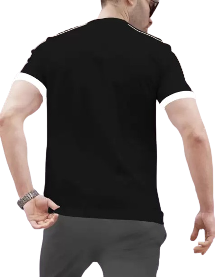 Men Typography Round Neck Cotton Blend Black T-Shirt