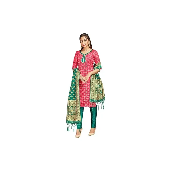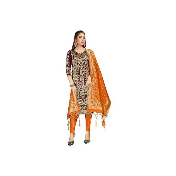 Pakistani Women's Readymade Dress Banarasi Art Silk Woven Salwar Kameez Silk Dupatta Stitched Suit